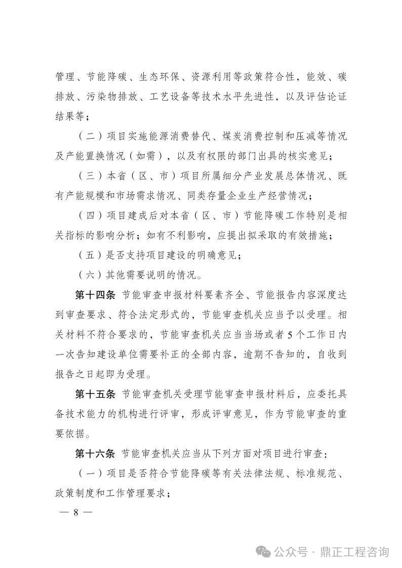 修訂印發(fā)《辦法》有利于在新形勢下進一步提升節(jié)能審查制度效能,將對深入推進節(jié)能降碳工作形成有力支撐?!掇k法》將碳排放評價和煤炭消費管理有關(guān)要求納入節(jié)能審查,對項目用能和碳排放情況進行綜合審查評價;建立節(jié)能審查權(quán)限動態(tài)調(diào)整機制,由國家發(fā)展改革委對重點領(lǐng)域重大項目實施節(jié)能審查和碳排放評價;強化節(jié)能審查事中事后監(jiān)管,壓實地方管理節(jié)能工作部門的監(jiān)督管理職責,完善項目節(jié)能報告和情況說明編制、項目重大變動情形、節(jié)能審查驗收等方面的具體規(guī)定,明確相關(guān)違法違規(guī)行為的法律責任。